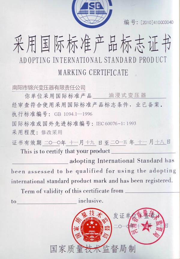 國際標準產(chǎn)品標志證書