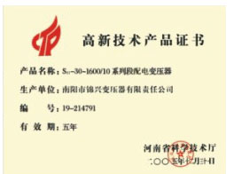 高新技術產(chǎn)品證書